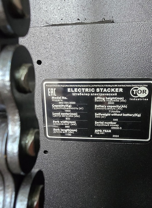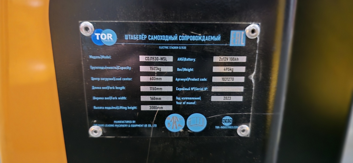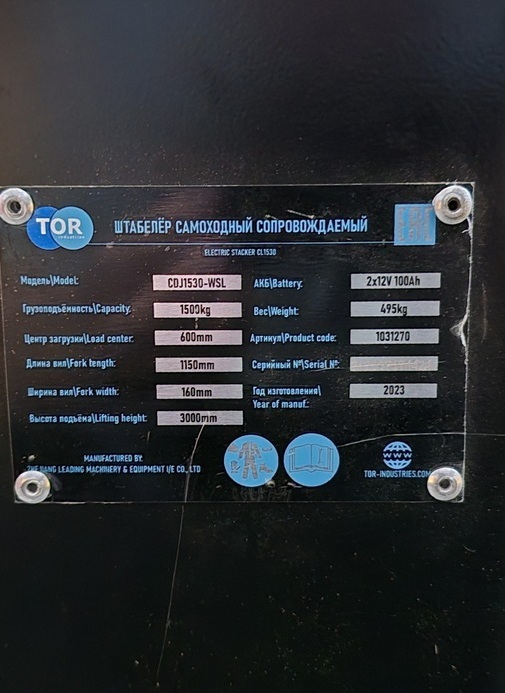 TOR WS 15 H350 1535 — компактный и маневренный штабелер для вашего бизнеса.Грузоподъёмность 1.5т с прочной конструкцией